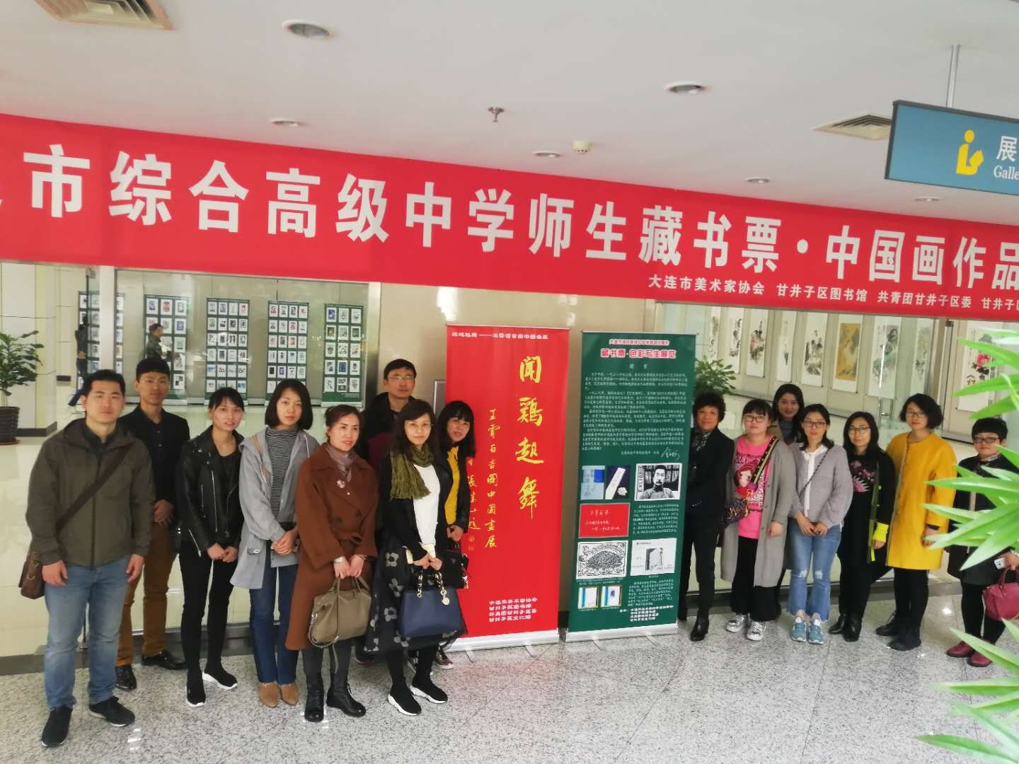 部分参加研训的教师到甘井子区图书馆观摩综合高中师生藏书票作品展